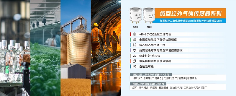 四方光電微型紅外二氧化碳傳感器SRH系列和微型紅外丙烷傳感器SBH系列均采用NDIR技術(shù),與熱催化和半導(dǎo)體技術(shù)相比不易受有害氣體影響,具有選擇性強(qiáng)、精度高、壽命長(zhǎng)的優(yōu)勢(shì)??梢栽谌珳囟群蜐舛认麓_保檢測(cè)精度,響應(yīng)快,穩(wěn)定性好,能夠在曲房和發(fā)酵池復(fù)雜環(huán)境中應(yīng)用,滿足白酒釀造過(guò)程中對(duì)于CO2濃度和乙醇揮發(fā)濃度監(jiān)測(cè)的需求。