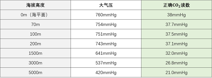 圖2 5%CO2在不同海拔下分壓數(shù)據(jù)
