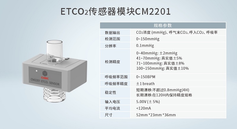 基于非分光紅外技術(shù)(NDIR),四方光電自主研發(fā)了呼氣末二氧化碳傳感器模塊CM2201,用于測定ETCO2濃度,可應用于呼吸機、麻醉機、監(jiān)護儀等醫(yī)療設(shè)備中,具有讀數(shù)精確,安全可靠,使用便捷和安裝靈活等優(yōu)點,且四方光電可根據(jù)客戶需求提供多種ODM定制方案,適用不同應用場景。