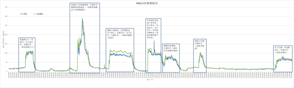 光散射技術(shù)在整車上的前裝應(yīng)用,和室內(nèi)家居場(chǎng)景完全不同,在技術(shù)上遇到了多種困難和挑戰(zhàn)。首先,車艙內(nèi)的空氣環(huán)境更為復(fù)雜。室內(nèi)家居環(huán)境如果長(zhǎng)期開(kāi)著凈化器或者新風(fēng)系統(tǒng),通過(guò)HEPA等過(guò)濾后,只要不是在霧霾天經(jīng)常開(kāi)窗通風(fēng),一般室內(nèi)環(huán)境比較潔凈,大顆粒不多,1μm以下的小粒子居多。這個(gè)時(shí)候其實(shí)PM2.5與PM1.0的數(shù)值是非常接近的,那么我們通過(guò)香煙進(jìn)行傳感器標(biāo)定就合情合理,也有標(biāo)準(zhǔn)依據(jù)(GBT18801-2015使用紅塔山1916品牌的香煙作為標(biāo)準(zhǔn)塵源)。但是車艙內(nèi)的環(huán)境就完全不是這樣,經(jīng)常的開(kāi)車窗、開(kāi)汽車空調(diào)外循環(huán)都會(huì)把外界空氣引入到車內(nèi),而國(guó)道、高速、地下車庫(kù)、城市等不同道路上的環(huán)境粉塵構(gòu)成均不同,存在較大差異,如果繼續(xù)沿用室內(nèi)家居的粉塵傳感器,明顯無(wú)法做到準(zhǔn)確的塵源識(shí)別和測(cè)量。四方光電通過(guò)多年對(duì)光散射的技術(shù)積累和對(duì)應(yīng)用場(chǎng)景的深入理解,開(kāi)發(fā)出智能塵源識(shí)別算法(API算法),能夠有效識(shí)別出車艙內(nèi)的顆粒物構(gòu)成,實(shí)現(xiàn)精準(zhǔn)測(cè)量。