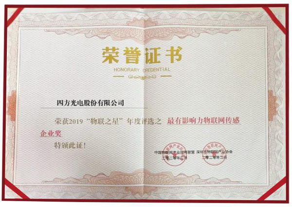 由中國物聯(lián)網(wǎng)產(chǎn)業(yè)應(yīng)用聯(lián)盟、深圳市物聯(lián)網(wǎng)產(chǎn)業(yè)協(xié)會主辦的2020中國物聯(lián)網(wǎng)CEO千人大會于2020年7月在深圳召開。在中國物聯(lián)網(wǎng)CEO交流晚宴暨“物聯(lián)之星”頒獎盛典上,經(jīng)眾多權(quán)威專家評審,四方光電股份有限公司(以下簡稱“四方光電”)憑借在物聯(lián)網(wǎng)領(lǐng)域的影響力,榮獲“物聯(lián)之星”中國最有影響力物聯(lián)網(wǎng)傳感企業(yè)獎。