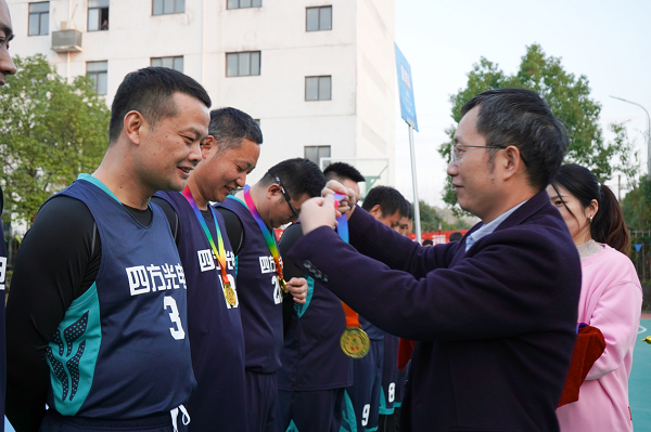頒獎(jiǎng)典禮上,四方光電總經(jīng)理劉志強(qiáng)為獲獎(jiǎng)隊(duì)伍球員頒發(fā)第八屆“四方杯”籃球聯(lián)賽定制獎(jiǎng)牌及錦旗,同時(shí)表達(dá)了對(duì)下一屆四方杯的期許。他表示,本次籃球賽賽出了成績(jī),更賽出了大家積極向上的拼搏精神。希望員工日常加強(qiáng)鍛煉,提高拼搏奮進(jìn)、迎“籃”而上的意志,增強(qiáng)團(tuán)隊(duì)之間的凝聚力和合作精神,并呼吁更多的員工加入體育運(yùn)動(dòng)中來,以健康的體魄迎接下一個(gè)挑戰(zhàn)。大家紛紛表示,在以后的工作中,會(huì)繼續(xù)保持這種團(tuán)結(jié)協(xié)作、銳不可擋的精神,為公司的發(fā)展貢獻(xiàn)力量。